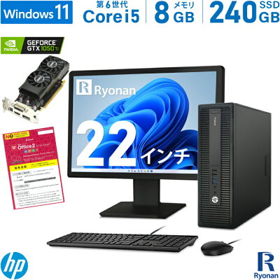 HP ProDesk 600 G2 SFF 第6世代 Core i5 メモリ:8GB 新品SSD:240GB デスクトップパソコン 22インチ 液晶 新品キーボード マウス Office付 ゲーミングPC グラフィックボード搭載 GeForce GTX1050Ti モニターセット Windows11 【中古】| デスクトップ パソコンプ パソコン
