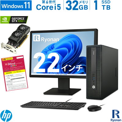 HP ProDesk 600 G2 SFF 第6世代 Core i5 メモリ:32GB 新品SSD:1TB デスクトップパソコン 22インチ 液晶 新品キーボード マウス Office付 ゲーミングPC グラフィックボード搭載 GeForce GTX1050Ti モニターセット Windows11 【中古】| デスクトップ パソコン