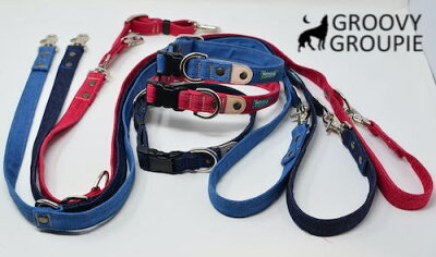 《中型犬用》首輪とリードセット デニム3色&レザー【ポスト投函選択で送料無料】