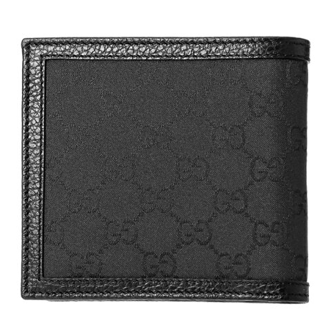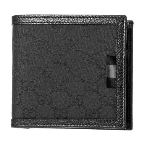 GGパターンのナイロン素材にシボ加工が施された上質なカーフレザーを組み合わせた2つ折り財布。