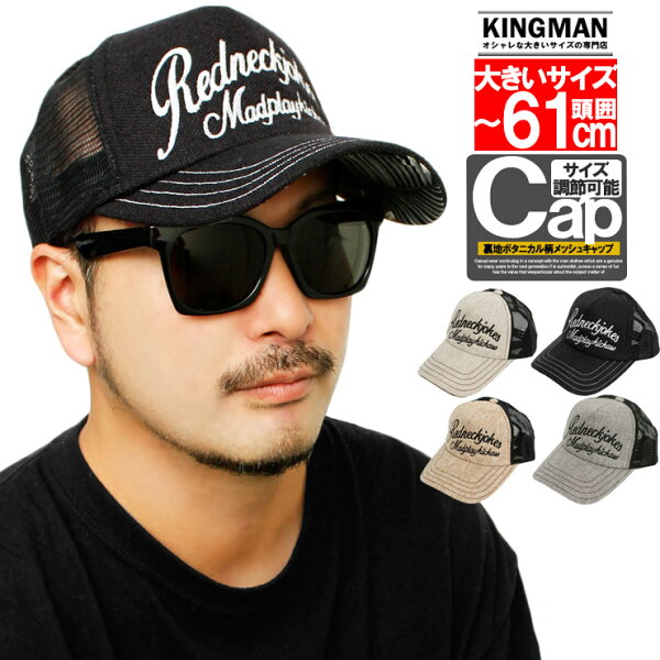 麻素材のような風合いの素材を使用したメッシュキャップメッシュキャップ メンズ 大きいサイズ 選べるサイズ レディース 裏地ボタニカル柄 刺繍 プリント キャップ SPEC 説明 麻素材のような風合いの素材を使用したメッシュキャップです。