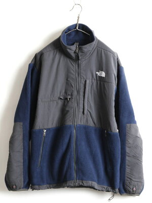 ■ ノースフェイス デナリ ジャケット ( メンズ L ) 古着 The North Face DENALI フルジップ フリース ナイロン ブルゾン 2トーン 灰 紺| 中古 アウトドア ノース フリースジャケット ジャンパー デナリジャケット ポーラテック POLARTEC ワンポイント グレー ネイビー