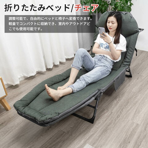 折りたたみベッド ポータブルベッド 簡易ベッド 介護用ベッド リクライニングチェア 昼寝椅子 シングル 折りたたみチェア アウトドア キャンピング 調整可能 軽量 組み立て簡単 ポータブル 室内 耐荷重150kg