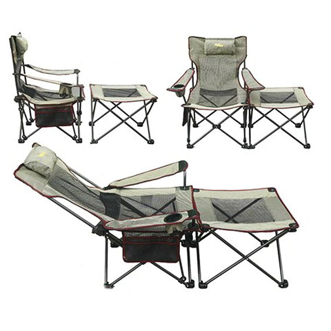 アウトドアチェア リクライニングチェア 角度調整 座る・寝転ぶ フットレスト簡単に取り外し 折りたたみ 肘掛け 耐荷重150kgスチール&オックスフォード 軽量 コンパクト 持ち運びしやすい 枕付き 室内/アウトドア用 お釣り 登山 収納バッグ付き