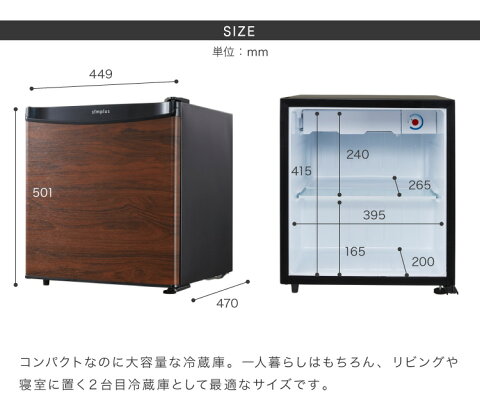 メーカー:simplus(シンプラス)型番:SP-47L1-WDカラー:ダークウッド(木目調)JAN:4589668478667【仕様】定格内容積:45L容積:冷蔵:42L / 製氷室:3L※製氷室でアイスクリームや冷凍商品の保存はできません。