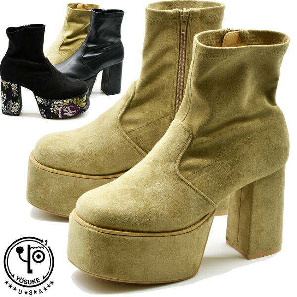 ヨースケ YOSUKE 厚底ブーツ ストレッチブーツ ショートブーツ チャンキーヒール レディース 4320031 セール