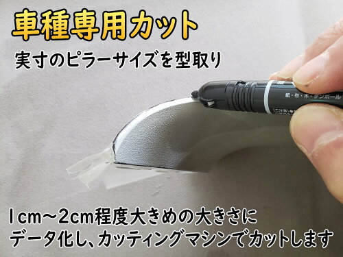 モケット系もいくつかテストし貼れることを確認しておりますが、ご自身のピラーに施工できるか否か は上記A4サイズでお試しくださいませ。