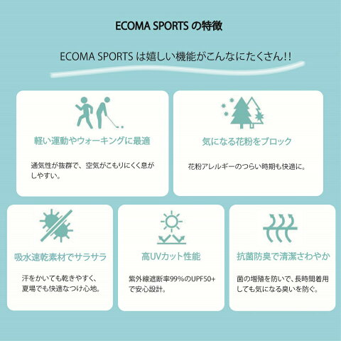商品情報 商品紹介 【ECOMA(エコマ) スポーツマスク】 ・呼吸のしやすさにこだわったスポーツ向けマスク。