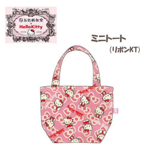 トートバッグ ミニトート バック キティちゃんコラボ 和柄 ミニトートバッグ ランチバッグ HelloKitty 日本製 五色帆布堂 和柄 リボン