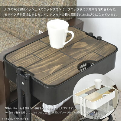 商品について: 人気のROSSINIメッシュバスケットワゴンに、ブロック状に天然木を貼り合わせたモザイク柄が登場しました。
