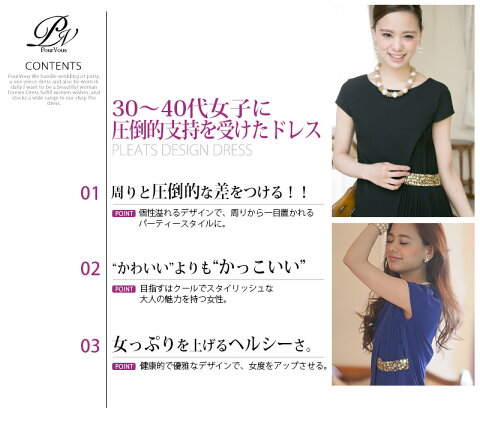 PourVousではワンピース・ドレス・ロングドレス・パーティドレス・結婚式ドレス・二次会ワンピ・謝恩会・各種パーティーにオススメなフォーマルドレス・シフォンワンピ・Aラインワンピ・ボレロ・パーティーバッグを取り扱っています。