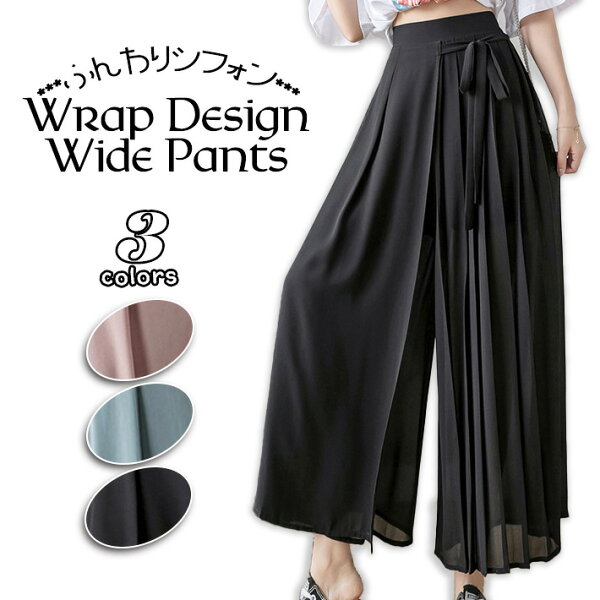 可愛く可憐に、大人っぽくエレガントに…コーデ幅が広いのが嬉しい! ワイドパンツ スカンツ ラップパンツ シフォンパンツ プリーツパンツ ラップスカート 【メール便(ネコポス便)で送料無料】※代引き決済は対象外※ ☆