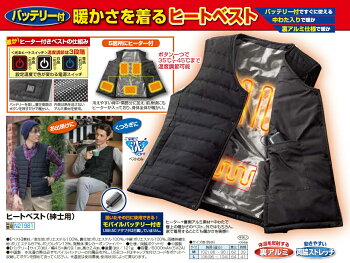 ※お取り寄せ商品です!!!【紳士用 バッテリー付 ヒートベスト】p21981秋冬 ヒーターベスト あったかベスト 発熱ベスト 防寒 あったかい 暖かい メンズ 紳士服 シニア 男性
