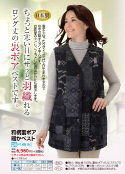 ※お取り寄せ商品です!【秋冬 日本製 和柄裏ボア暖かベスト】p18916黒系 トップス ベスト レディース 婦人 ミセス シニア 和風柄 あったか 防寒 ブラック 着物風模様